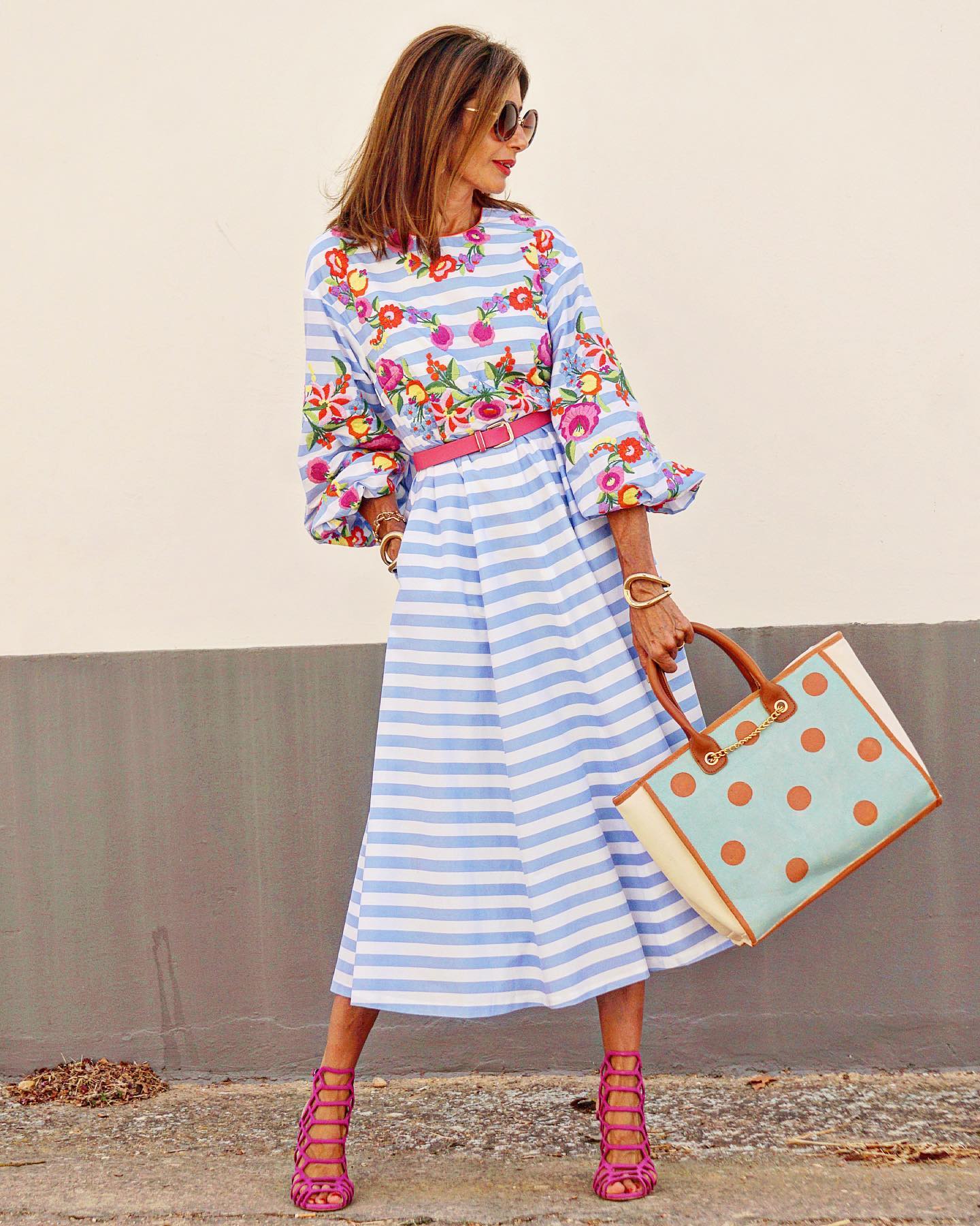 Elegant striped printed maxi dress ef12